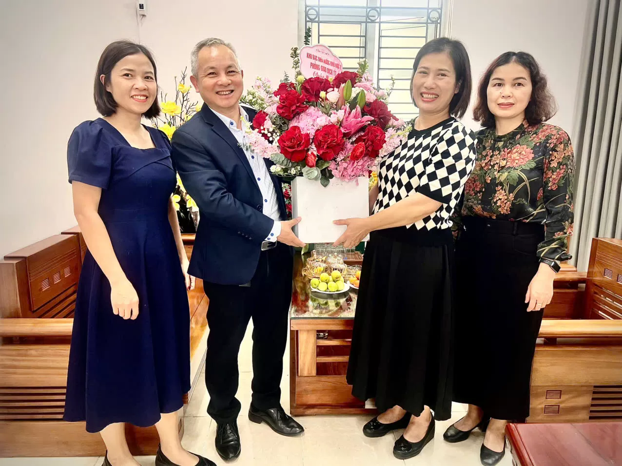 Đồng chí Phạm Hồng Hoàn – Phó Bí thư Thường trực Đảng ủy - Trưởng đoàn - đến thăm, tặng hoa và chúc mừng tập thể cán bộ, viên chức, người lao động Trạm Y tế xã Ô Diên.