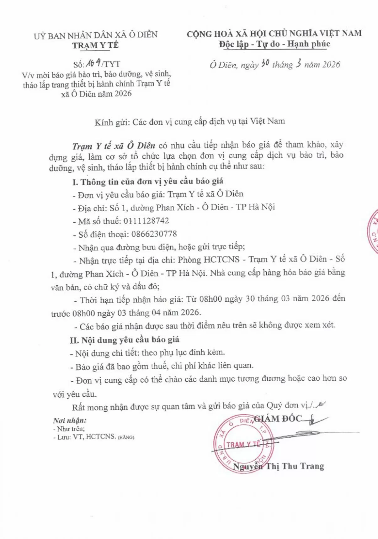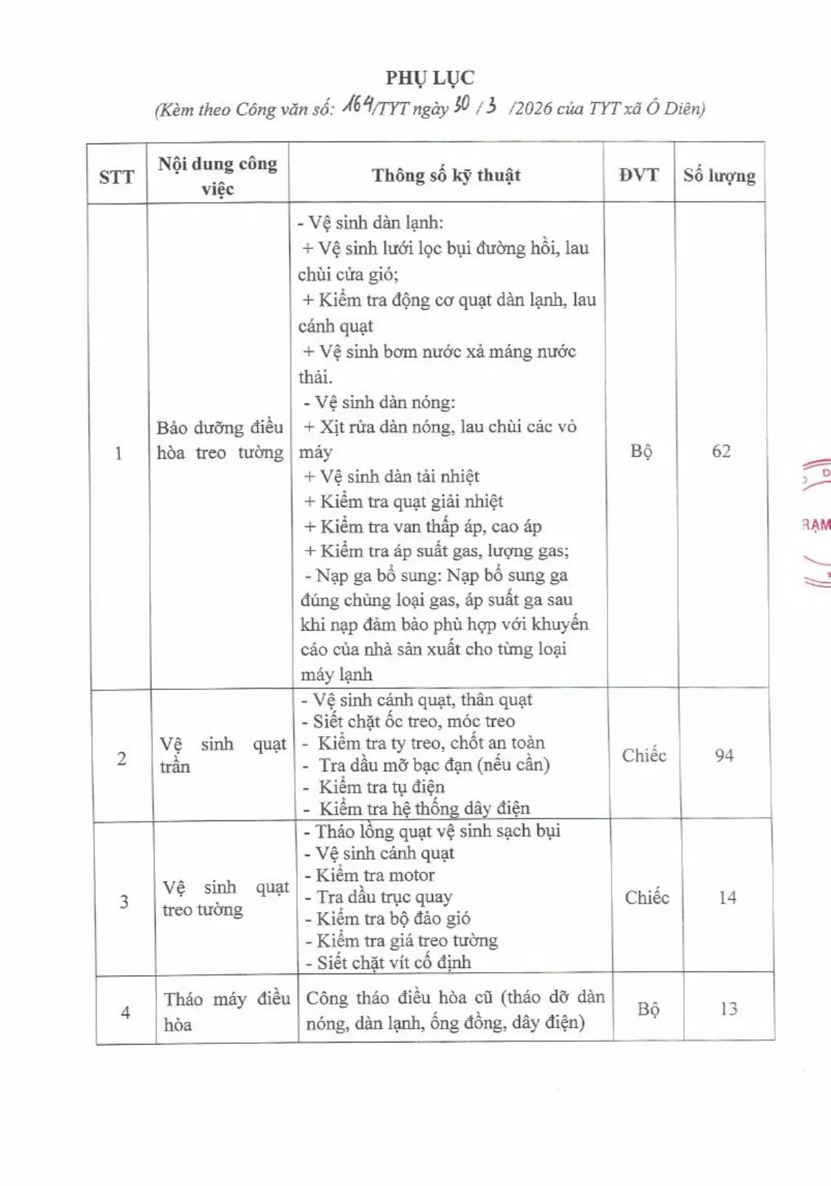 MỜI BÁO GIÁ BẢO TRÌ, BẢO DƯỠNG, VỆ SINH, THÁO LẮP TRANG THIẾT BỊ HÀNH CHÍNH TRẠM Y TẾ XÃ Ô DIÊN NĂM 202631/03/2026 Chia sẻ: