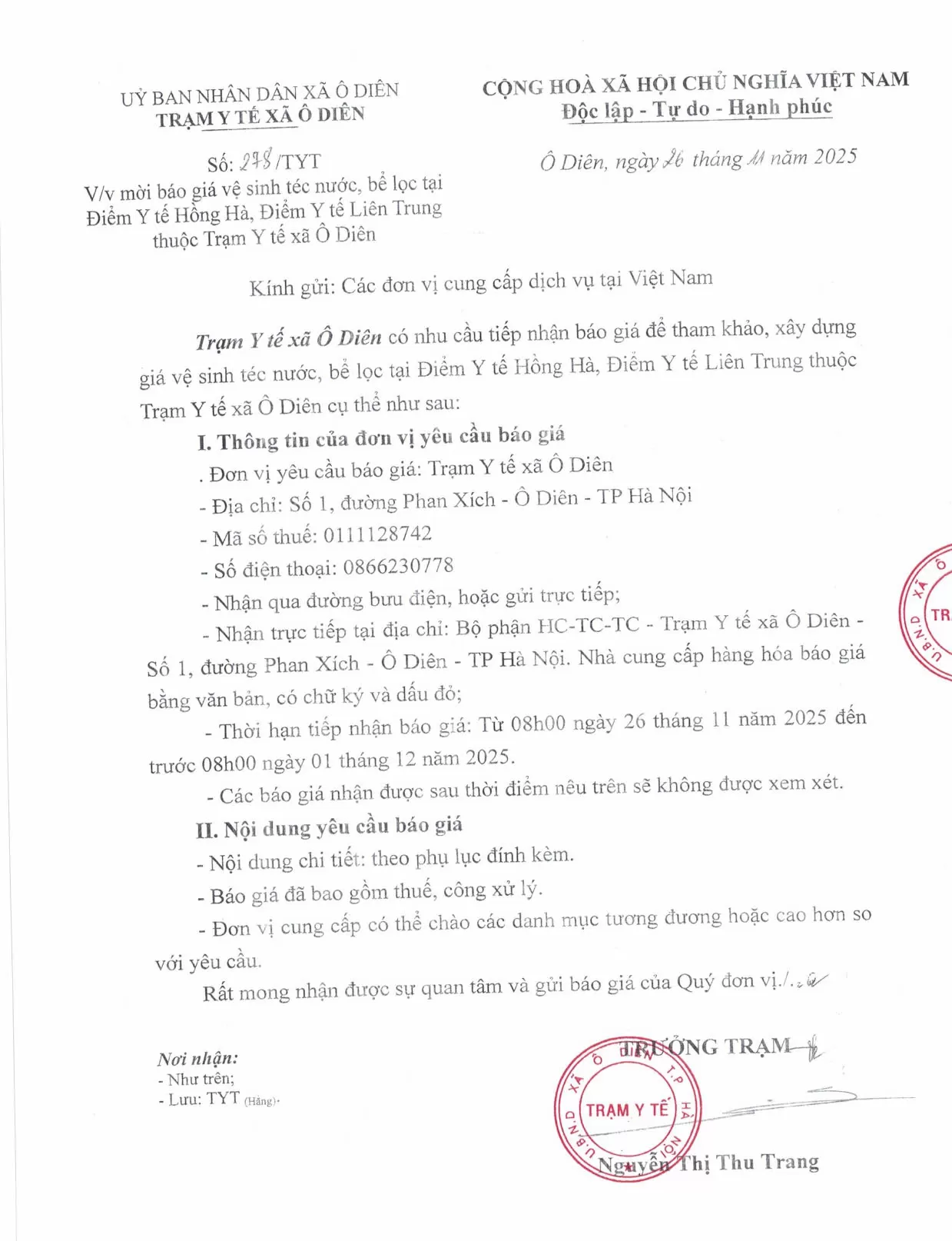 MỜI BÁO GIÁ VỆ SINH TÉC NƯỚC, BỂ LỌC TẠI ĐIỂM Y TẾ HỒNG HÀ, ĐIỂM Y TẾ LIÊN TRUNG