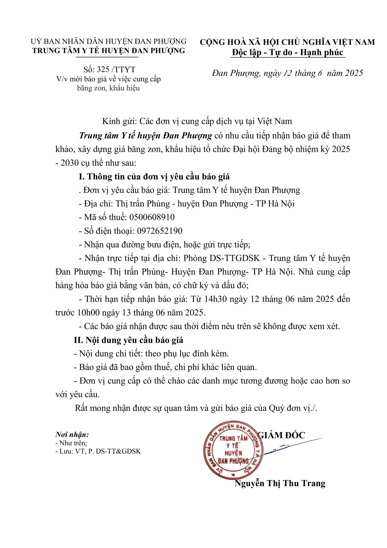 MỜI BÁO GIÁ VỀ VIỆC CUNG CẤP BĂNG ZÔN, KHẨU HIỆU