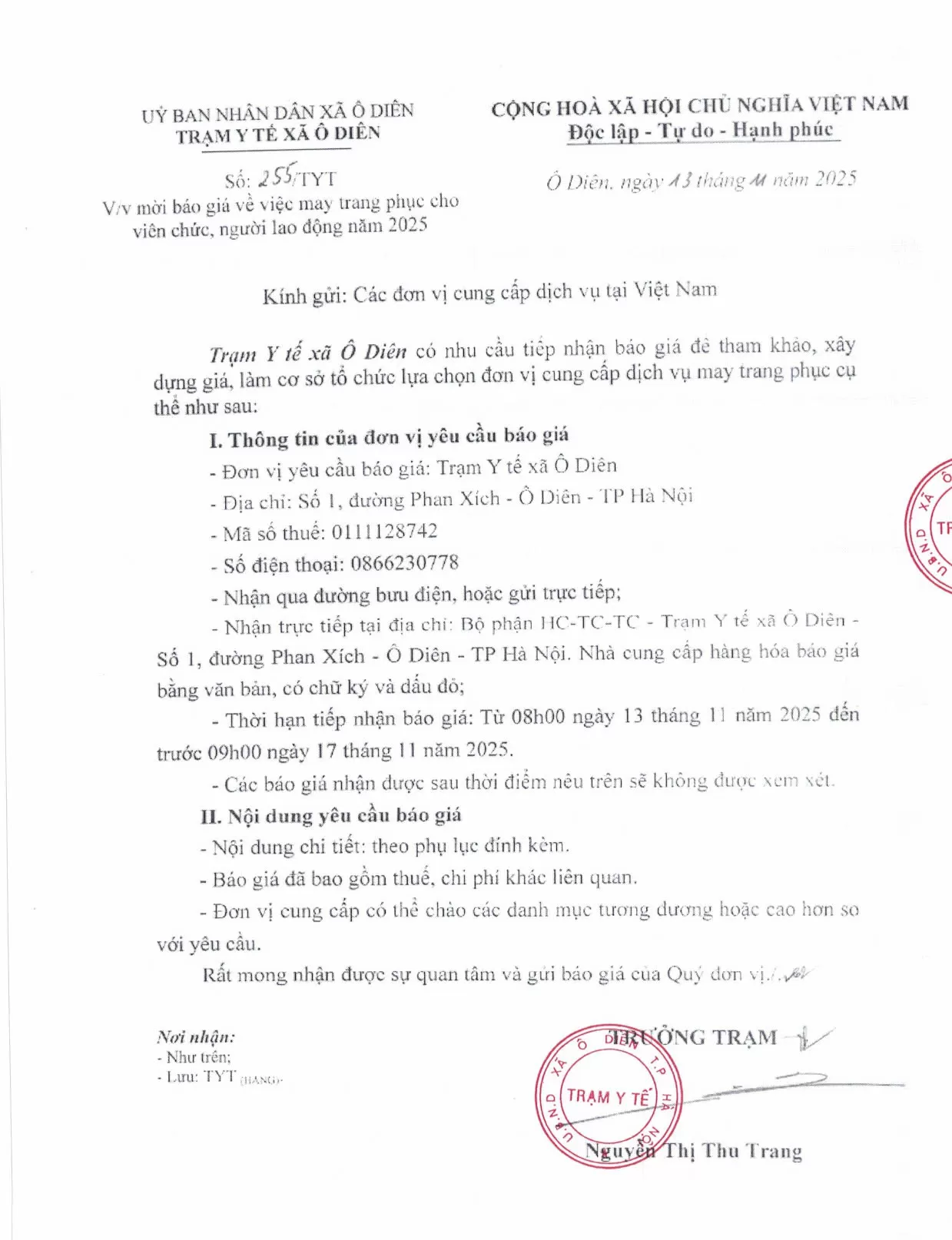 MỜI BÁO GIÁ VỀ VIỆC MAY TRANG PHỤC CHO VIÊN CHỨC, NGƯỜI LAO ĐỘNG