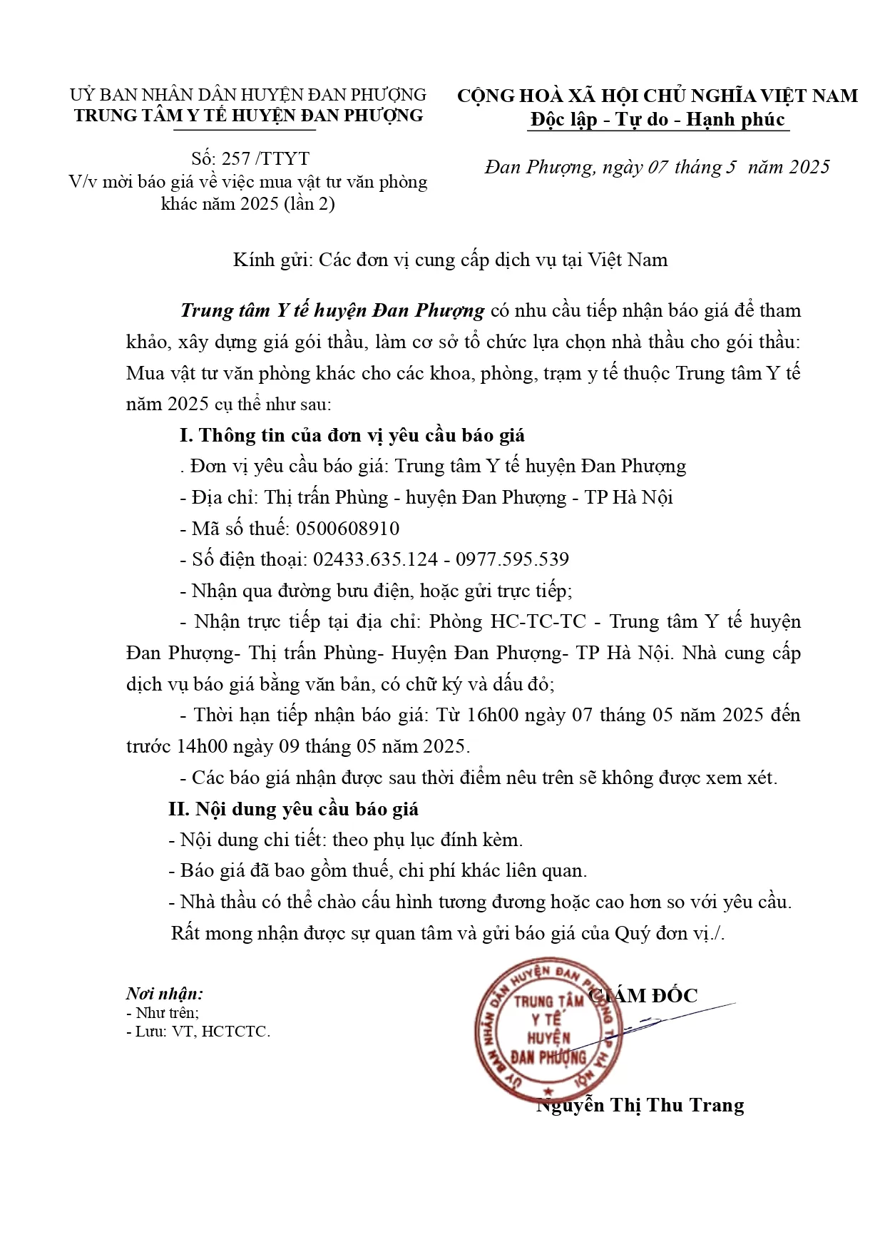 MỜI BÁO GIÁ VỀ VIỆC MUA VẬT TƯ VĂN PHÒNG KHÁC NĂM 2025 (lần 2)
