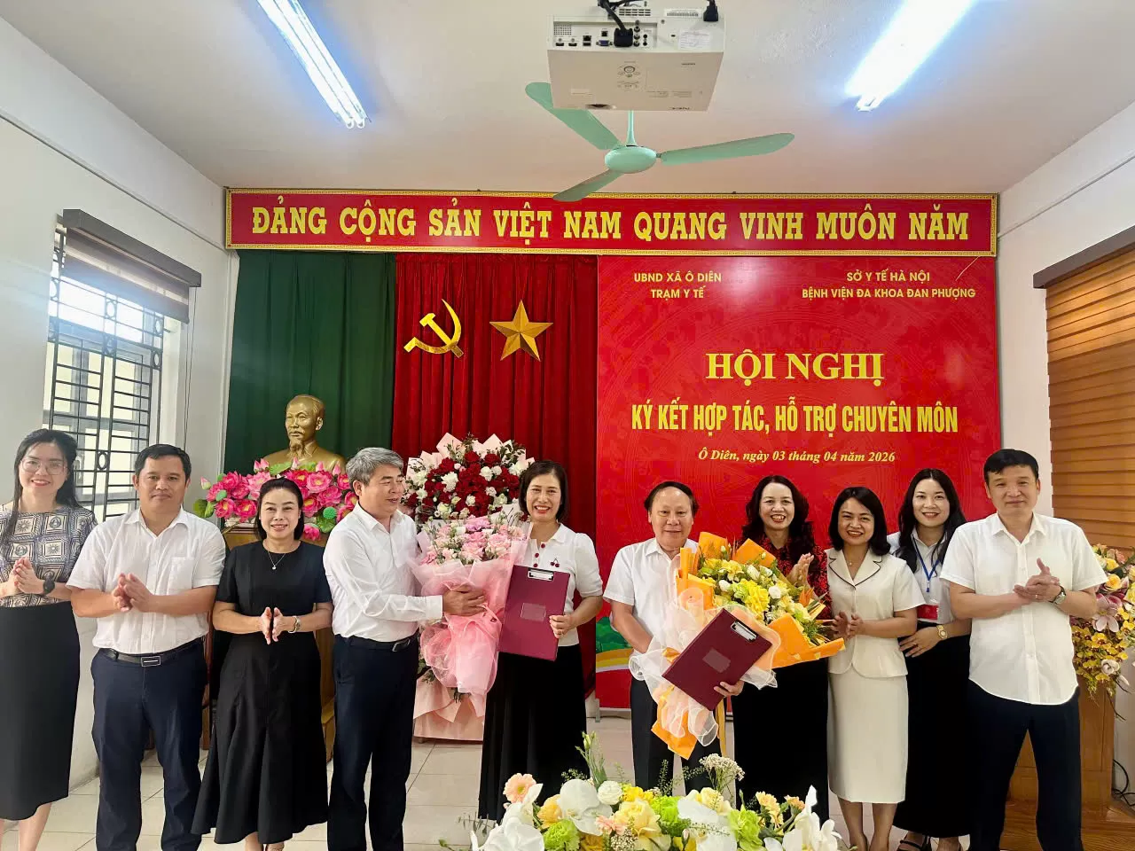 Sáng ngày 03/4/2026, tại Hội trường Trạm Y tế xã Ô Diên diễn ra Hội nghị ký kết hợp tác, hỗ trợ chuyên môn y tế giữa Trạm Y tế xã Ô Diên và Bệnh viện Đa khoa Đan Phượng. Đây là hoạt động có ý nghĩa quan trọng nhằm tăng cường năng lực chuyên môn cho tuyến y tế cơ sở, góp phần nâng cao chất lượng chăm sóc sức khỏe nhân dân trên địa bàn.