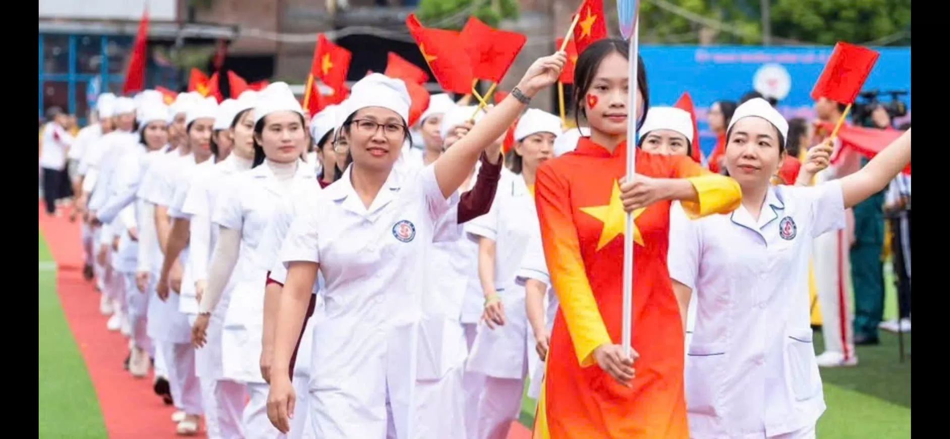 Đoàn diễu hành của Trạm Y tế xã Ô Diên xuất hiện nổi bật trong trang phục blouse trắng đồng bộ, với tác phong nghiêm túc, đội hình ngay ngắn và khí thế rộn ràng. Hình ảnh những “chiến sĩ áo trắng” rạng rỡ, tự tin không chỉ để lại ấn tượng đẹp trong lòng người xem, mà còn thể hiện rõ tinh thần “Khỏe để chăm sóc, phục vụ nhân dân”.
