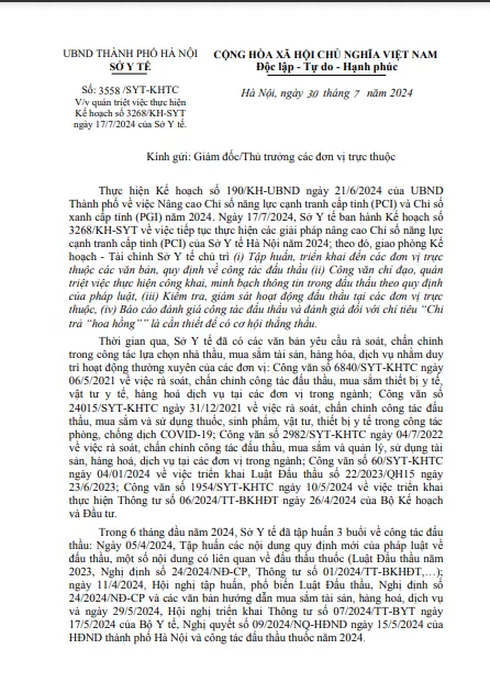 Về việc quán triệt thực hiện kế hoạch số 3268/KH-SYT ngày 17/7/2024 của sở y tế